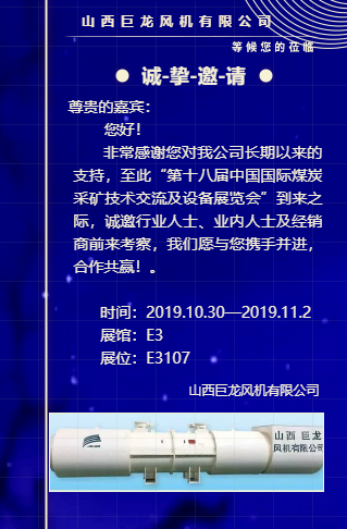 【山西巨龍風機有限公司】誠邀您蒞臨北京”第十八屆中國國際煤炭采礦技術(shù)交流及設備展覽會”參觀指導!